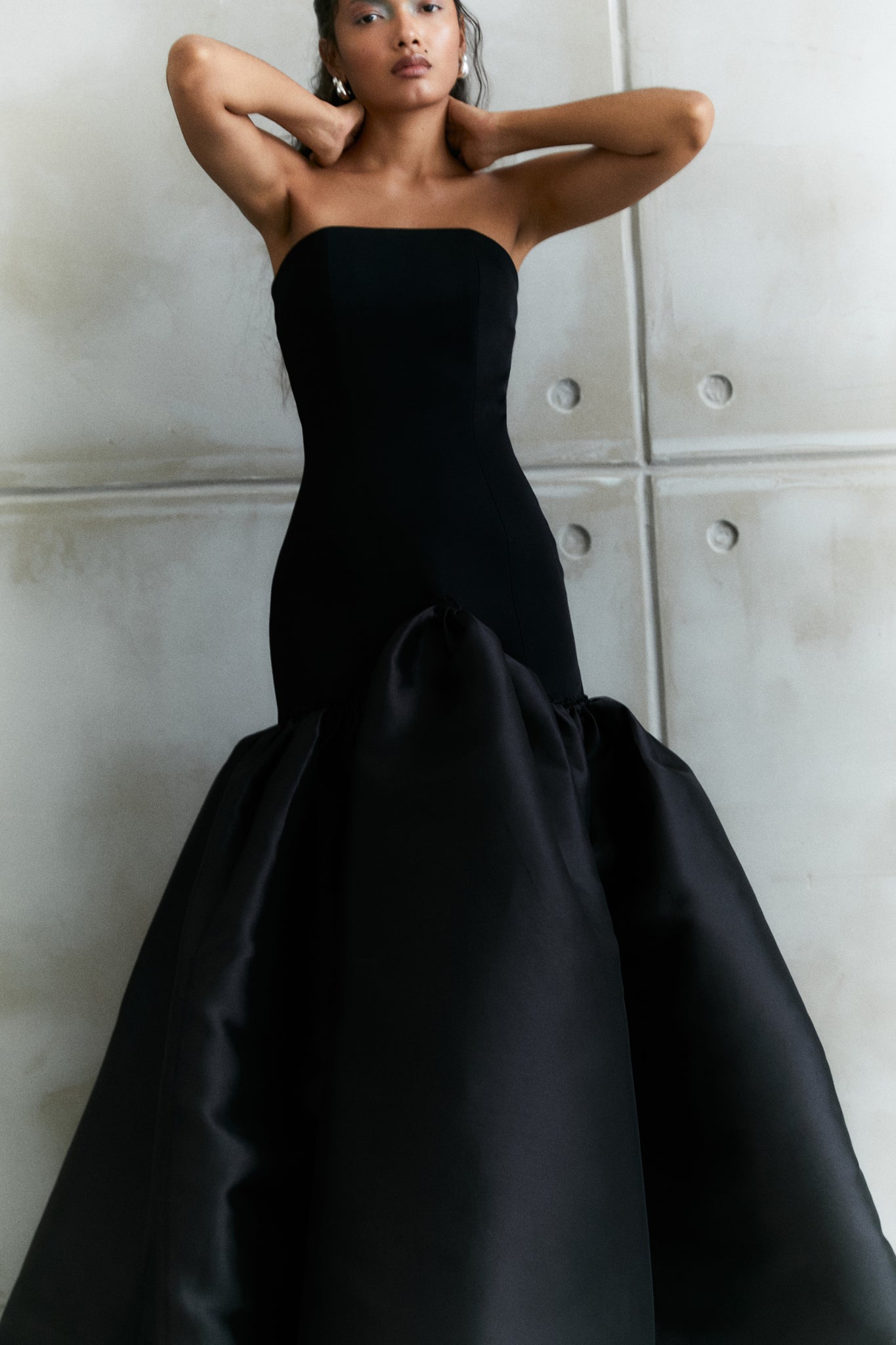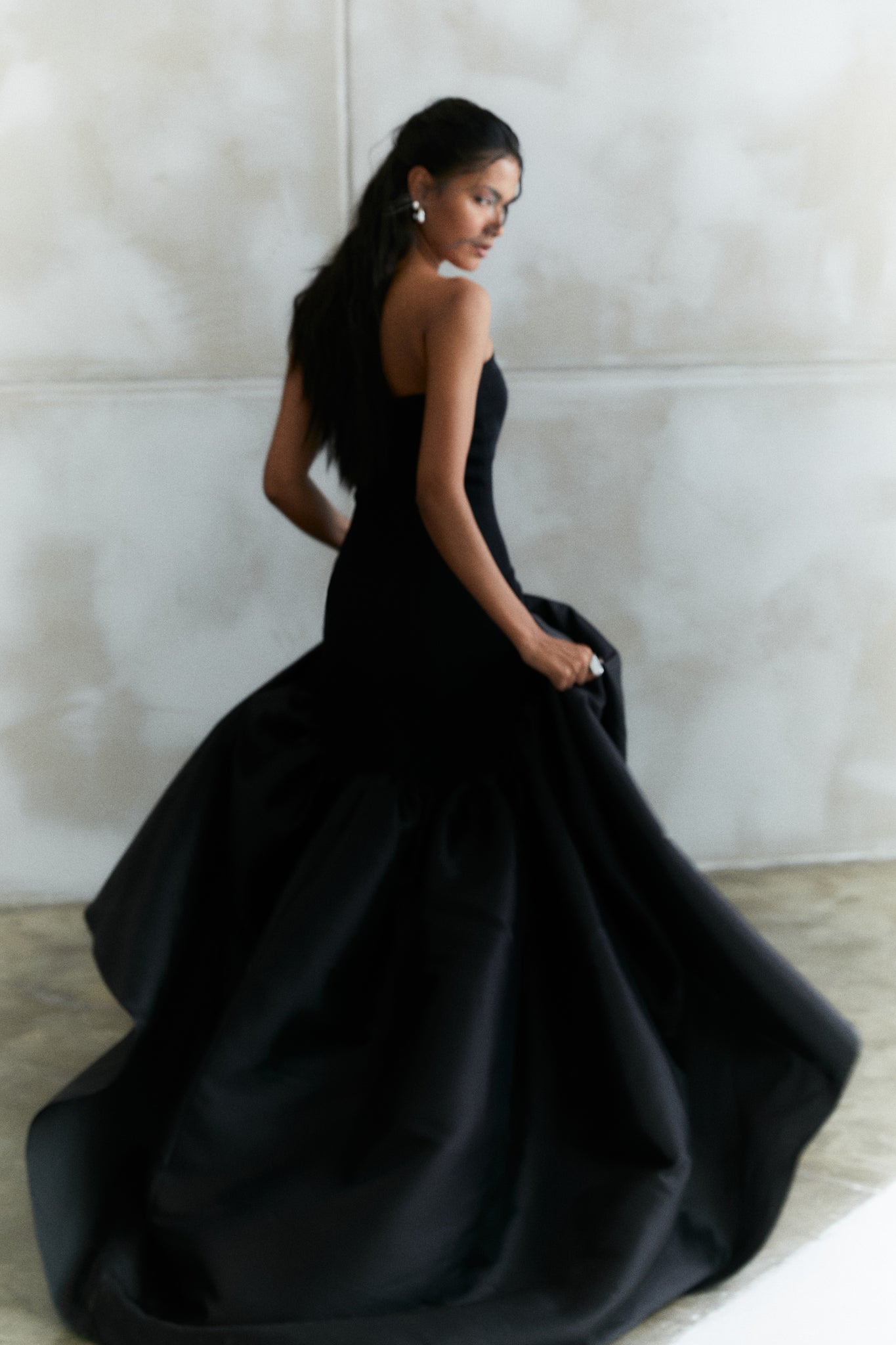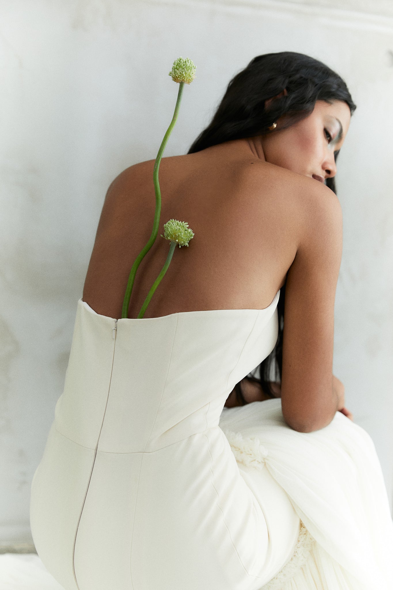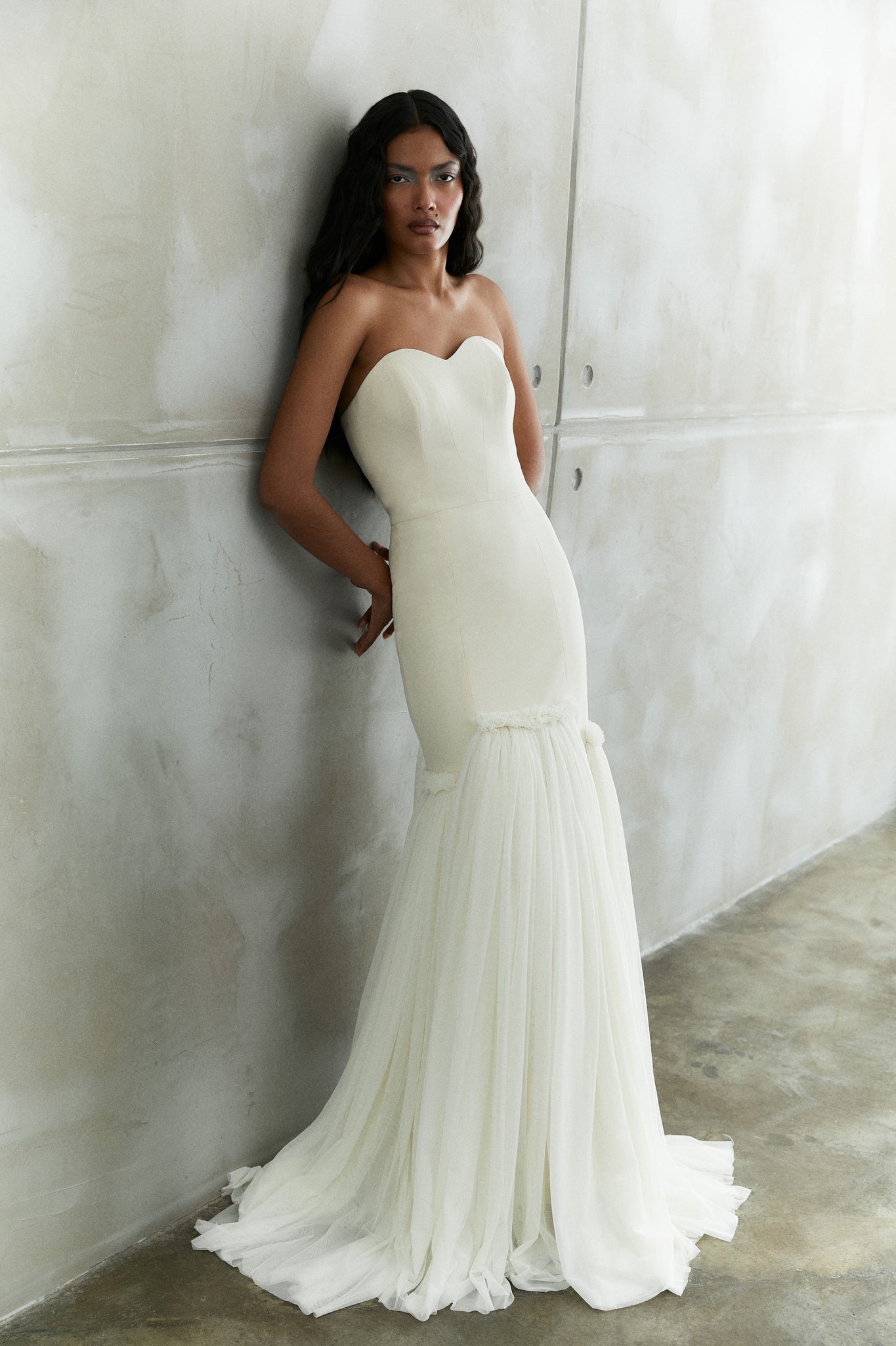 Strapless Crepe Gown With Gathered Soft Tulle Train