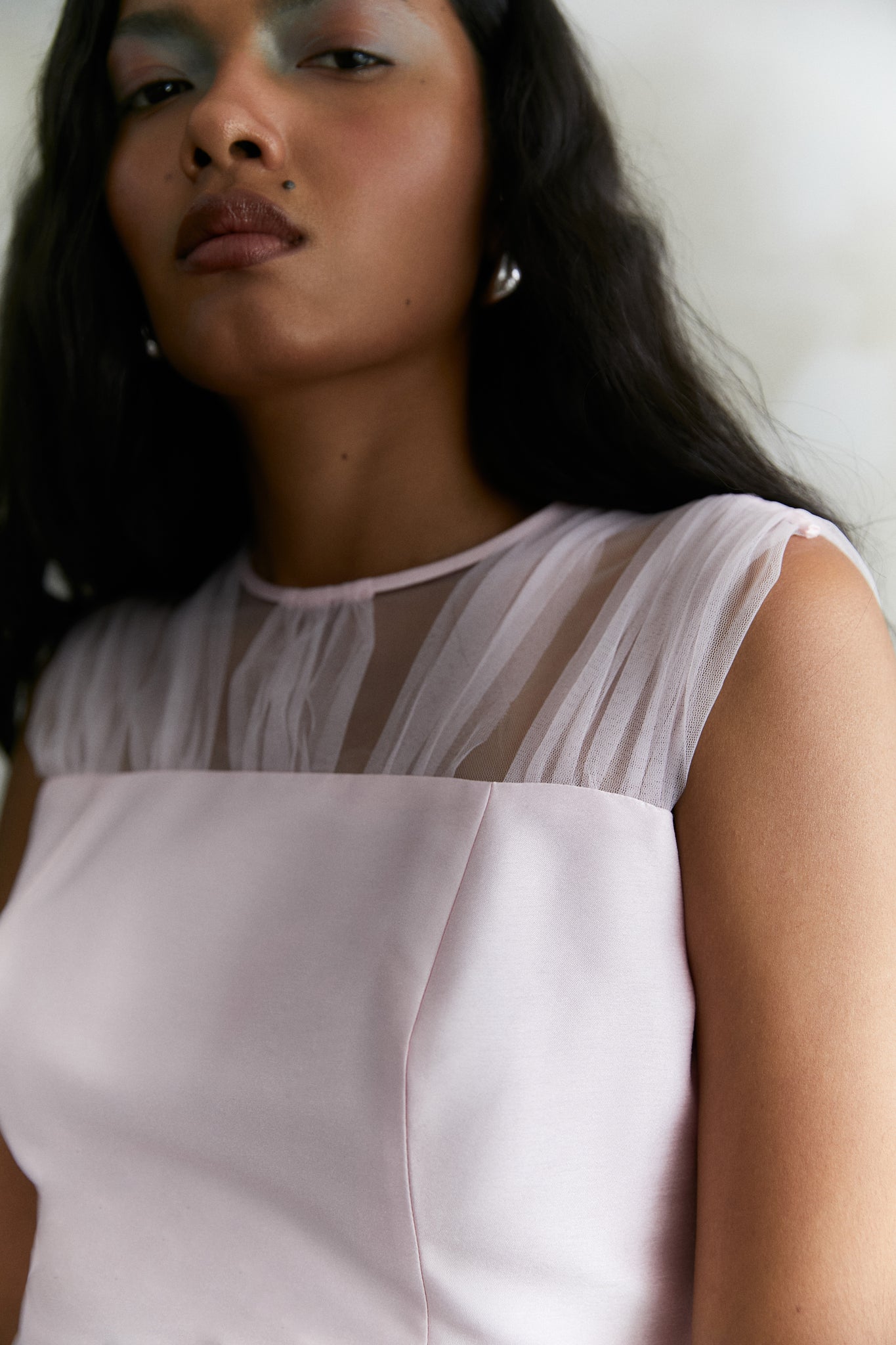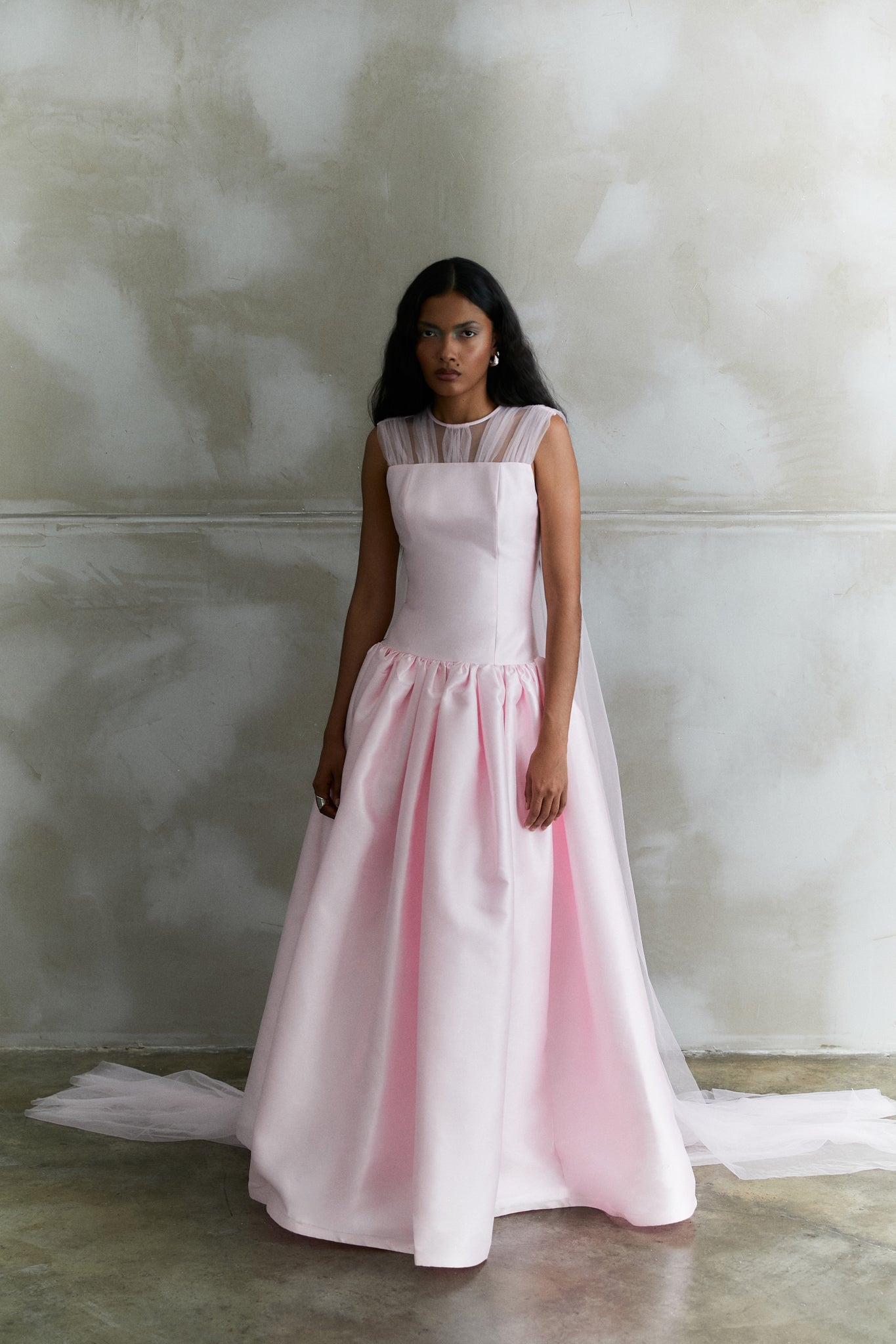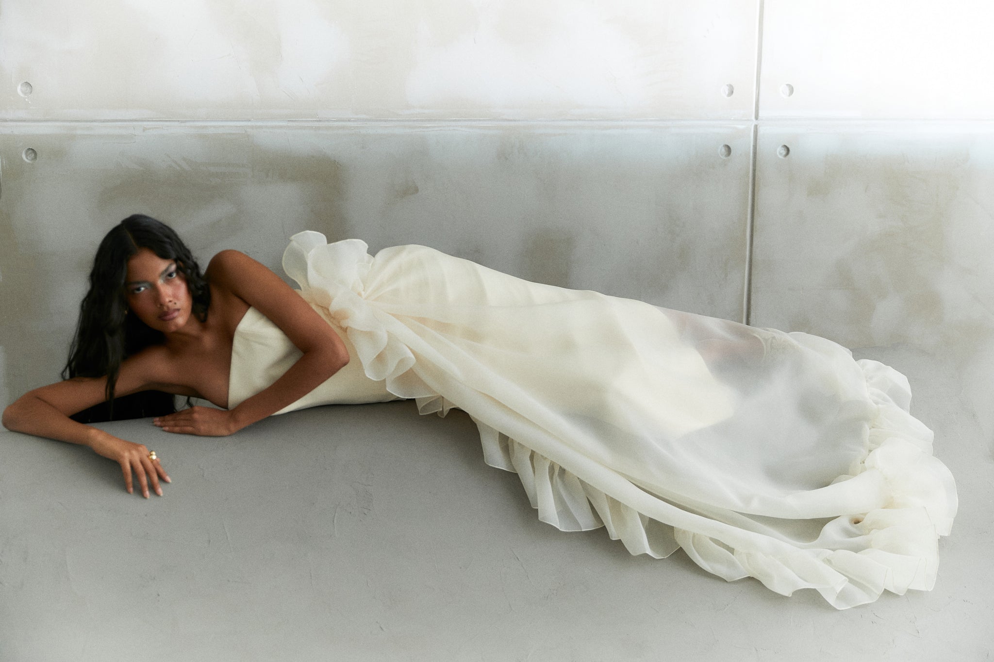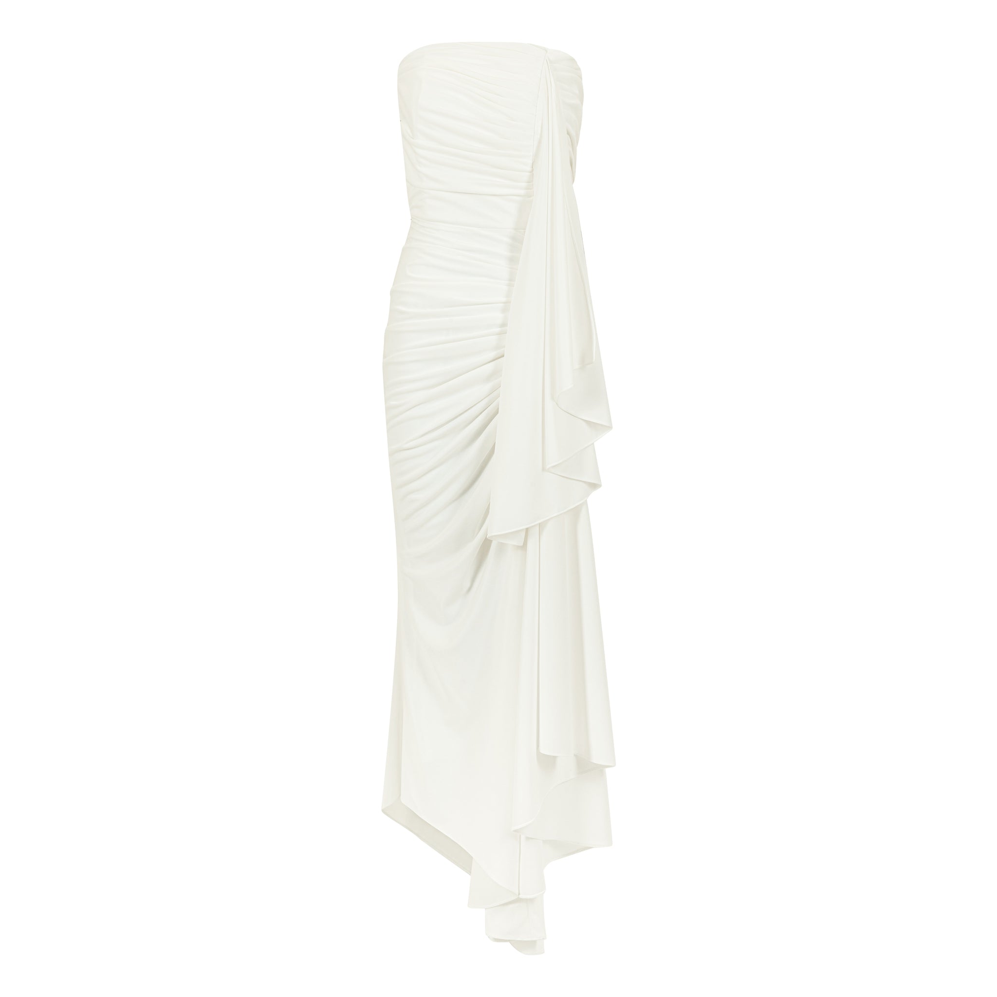 Strapless Crepe Gown With Gathered Soft Tulle Train