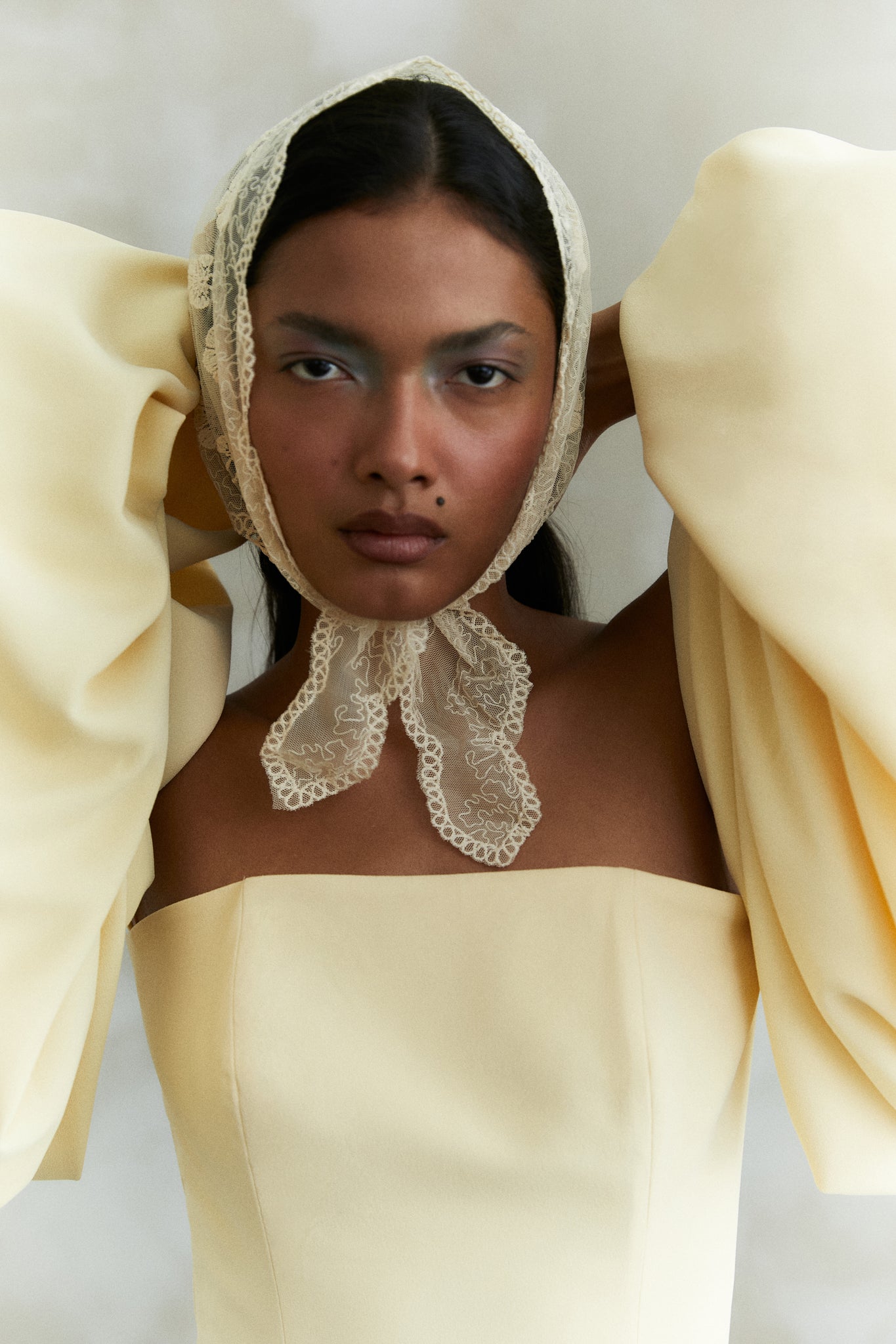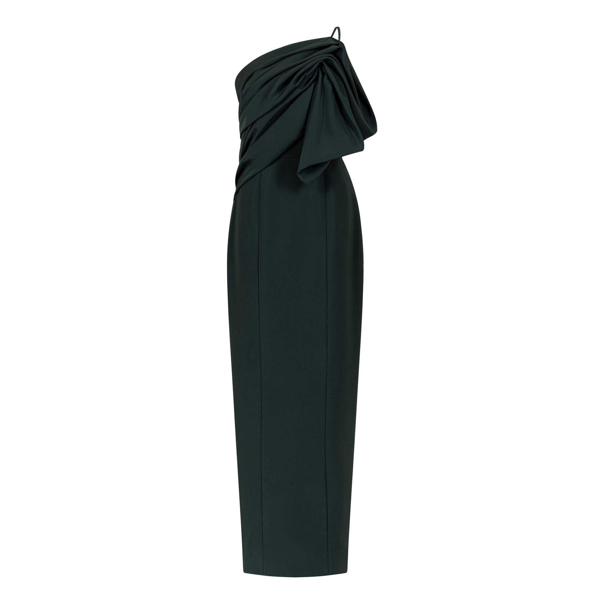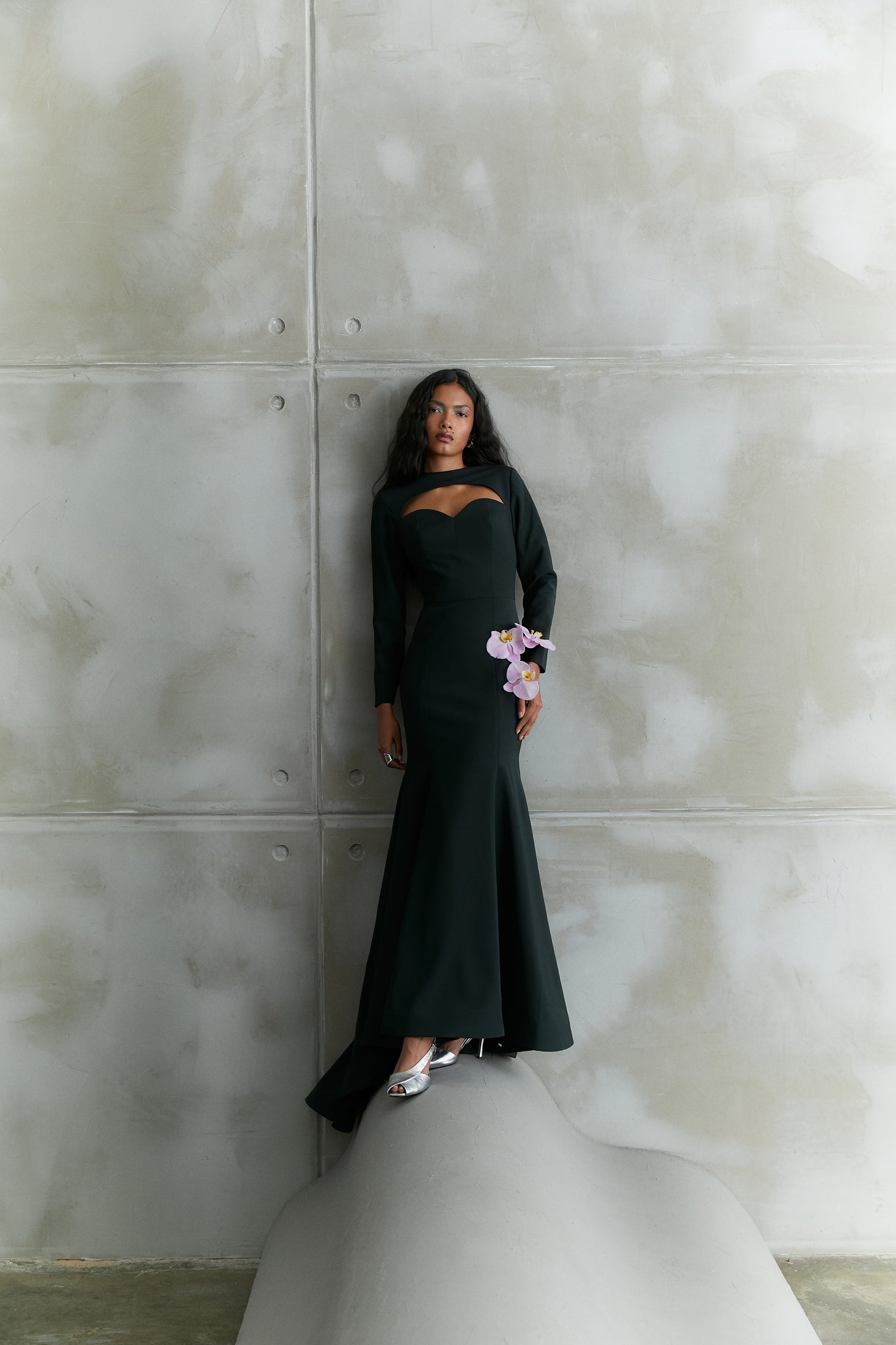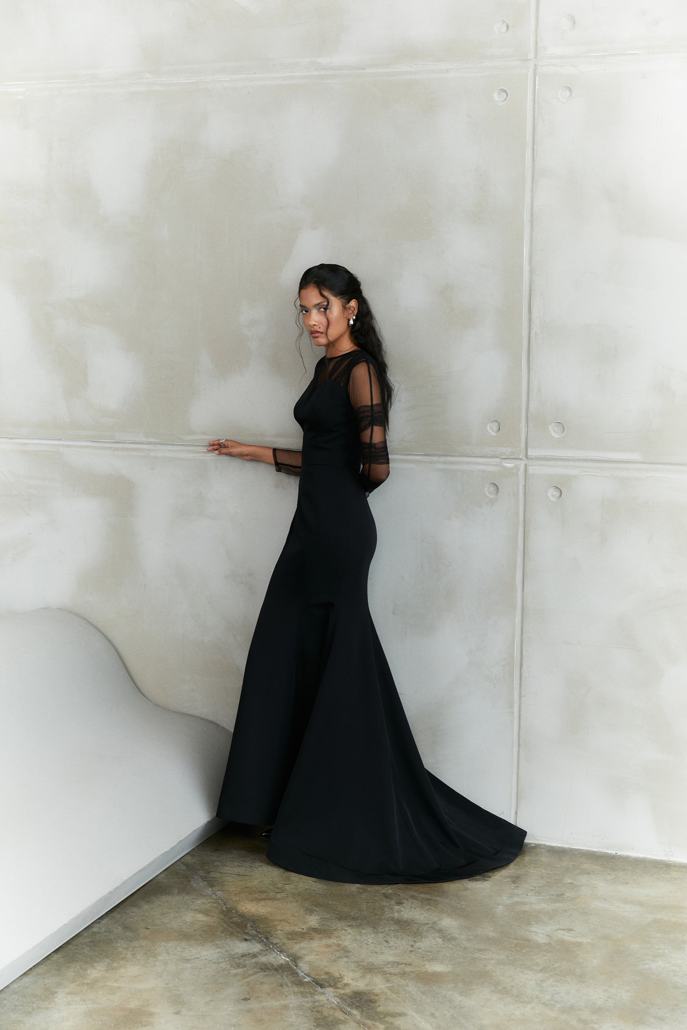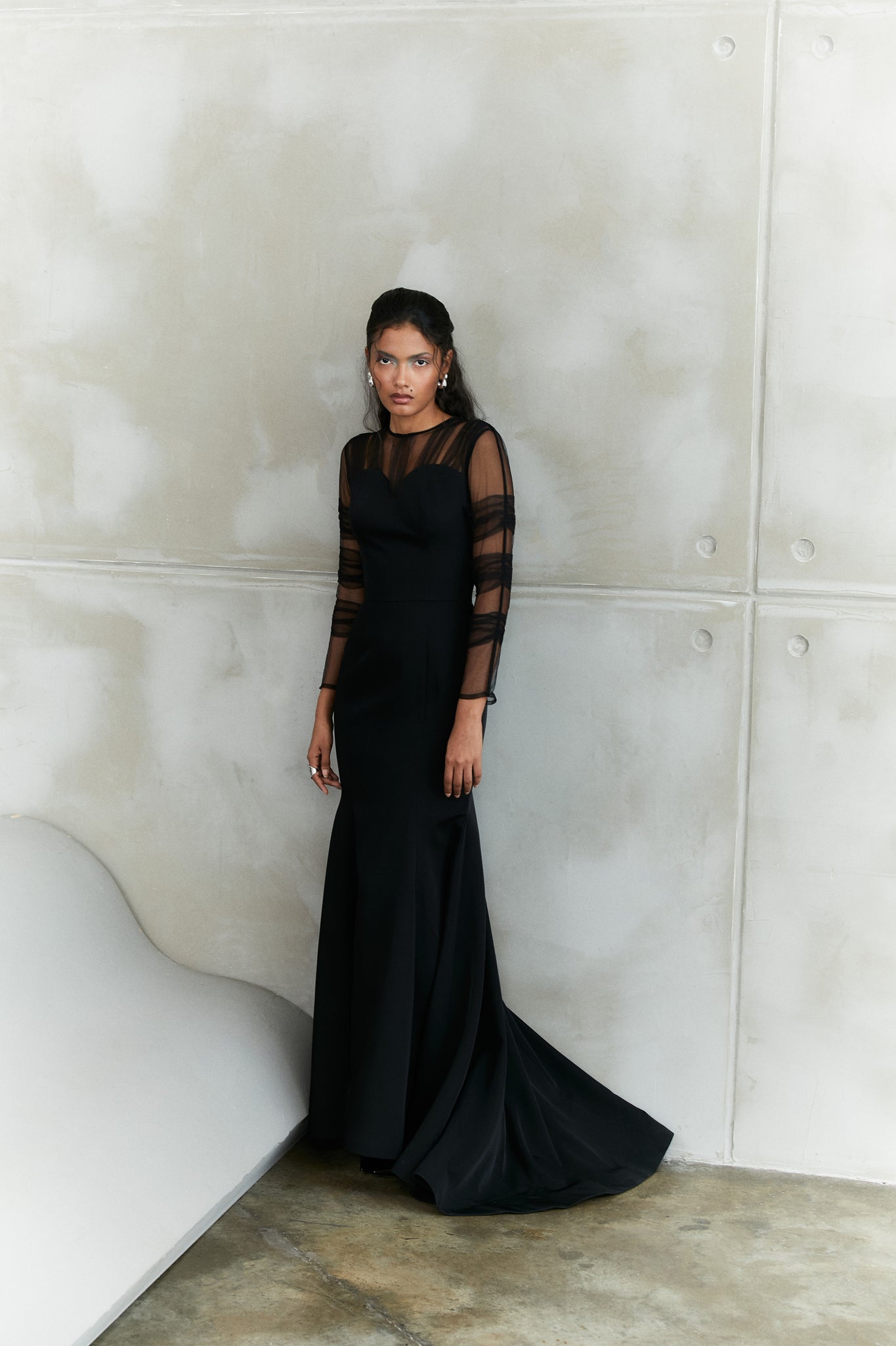 Off-Shoulder Mermaid Crepe Gown With Structured Neckline