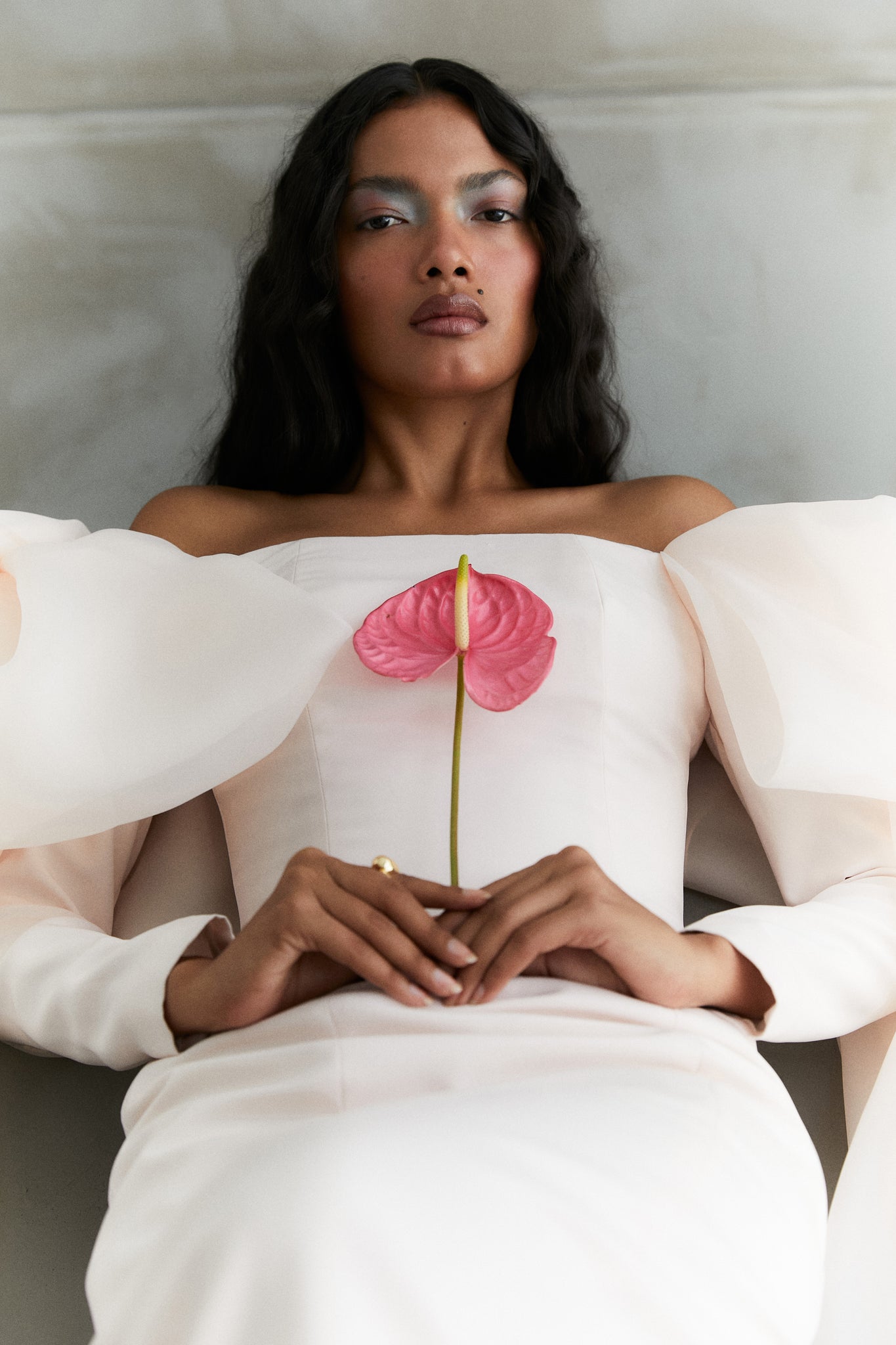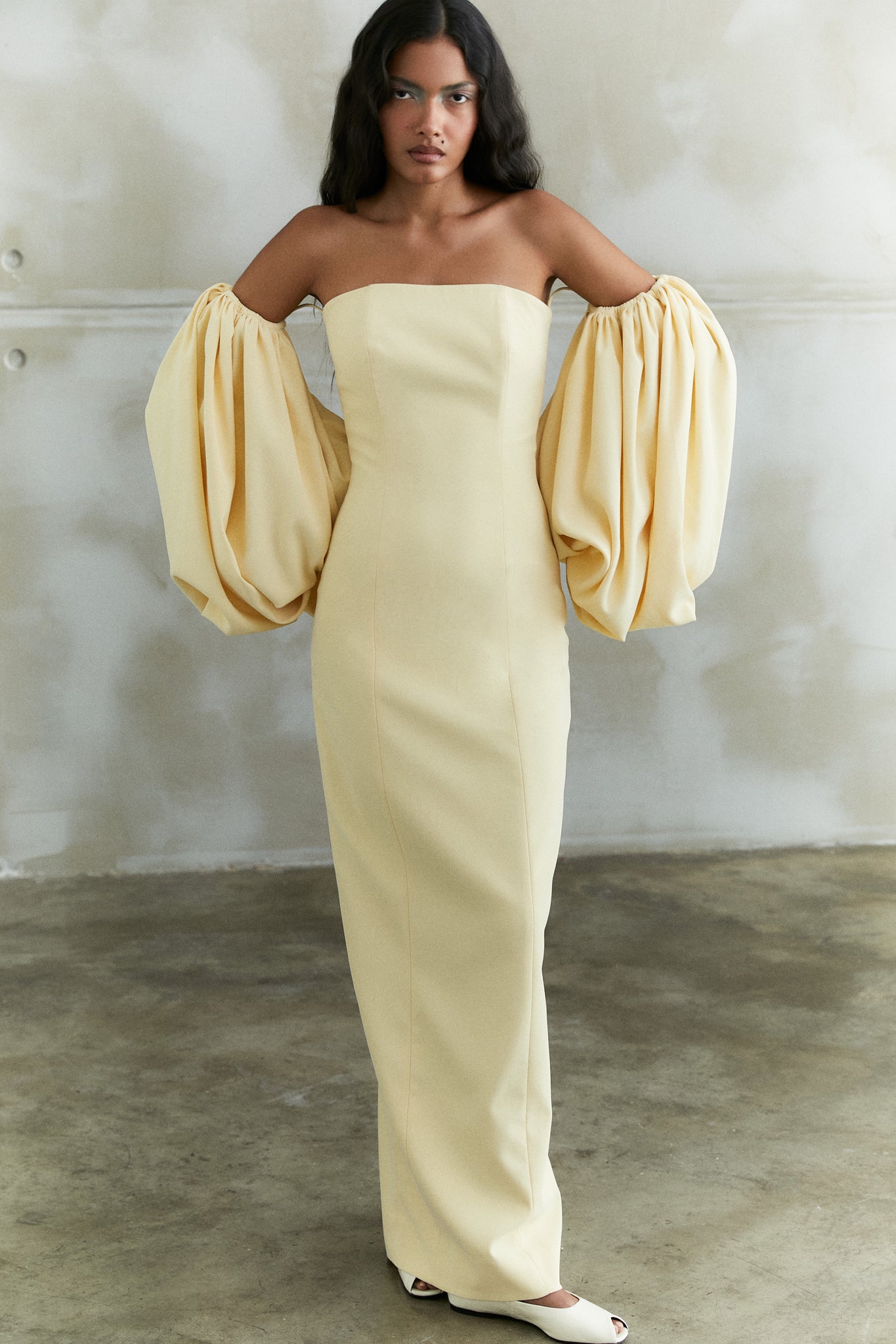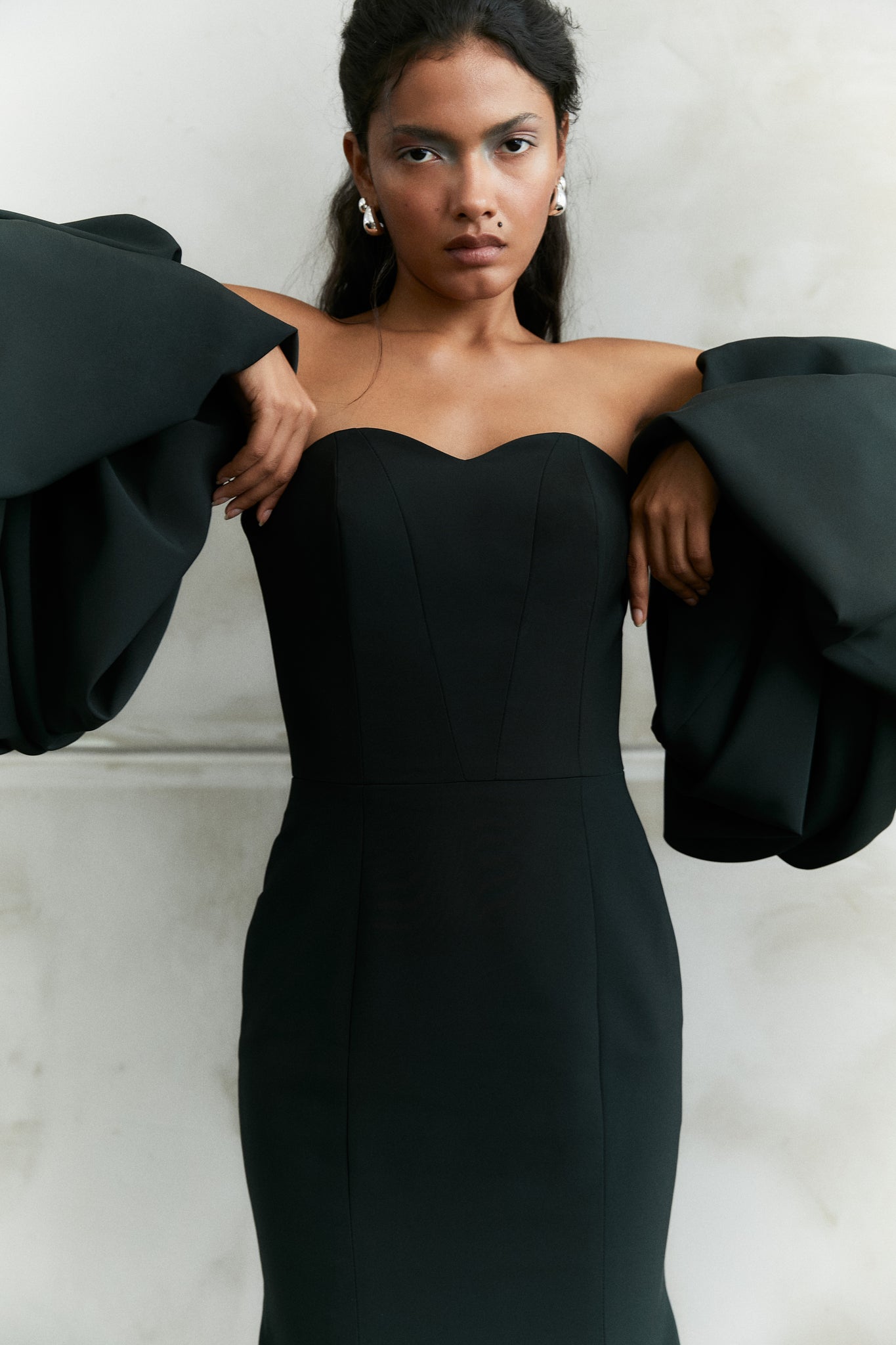 Off-Shoulder Crepe Skinny Gown With Balloon Sleeve