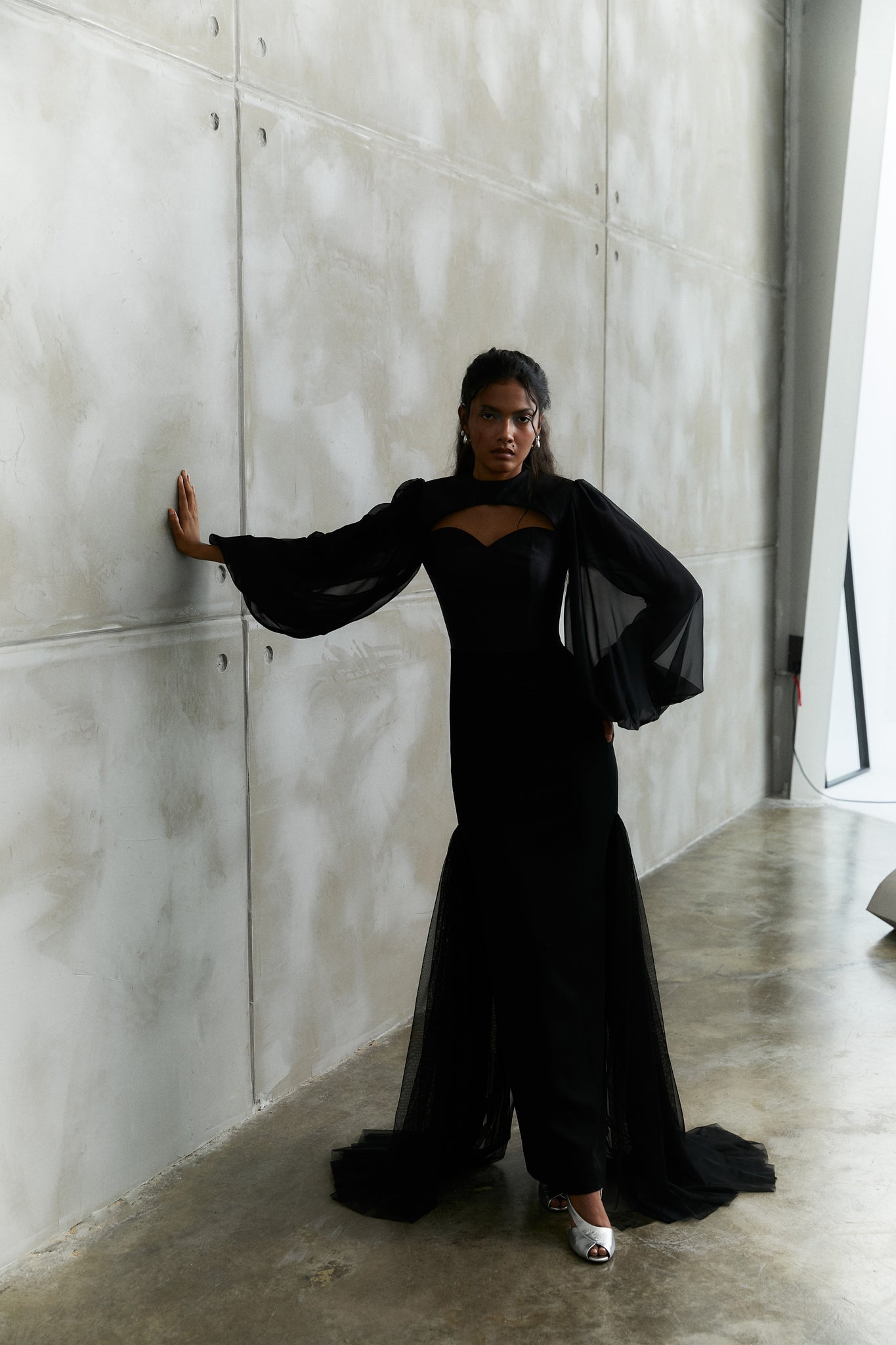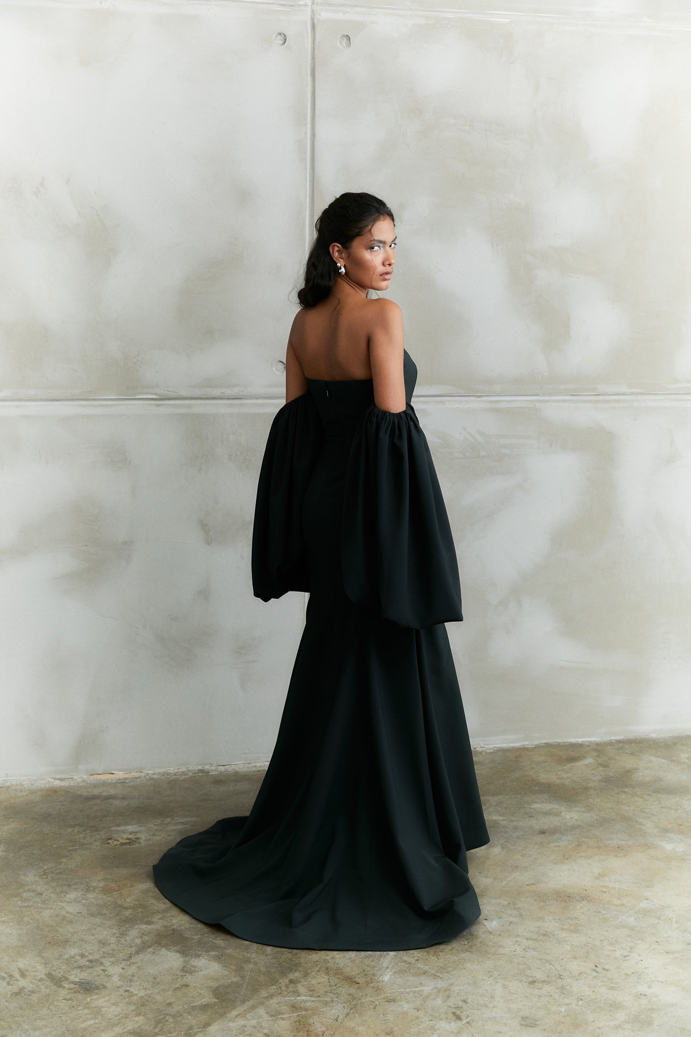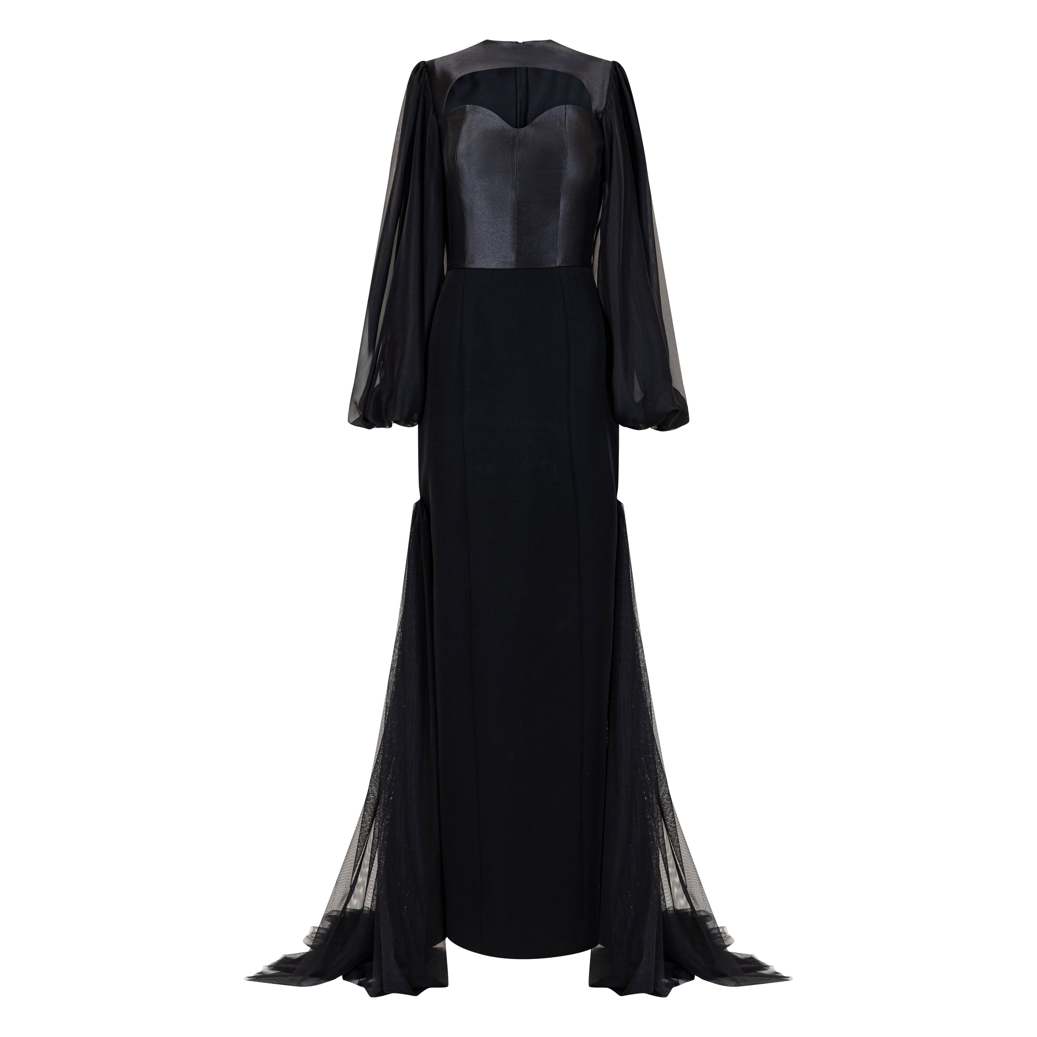 Off-Shoulder Crepe Skinny Gown With Balloon Sleeve
