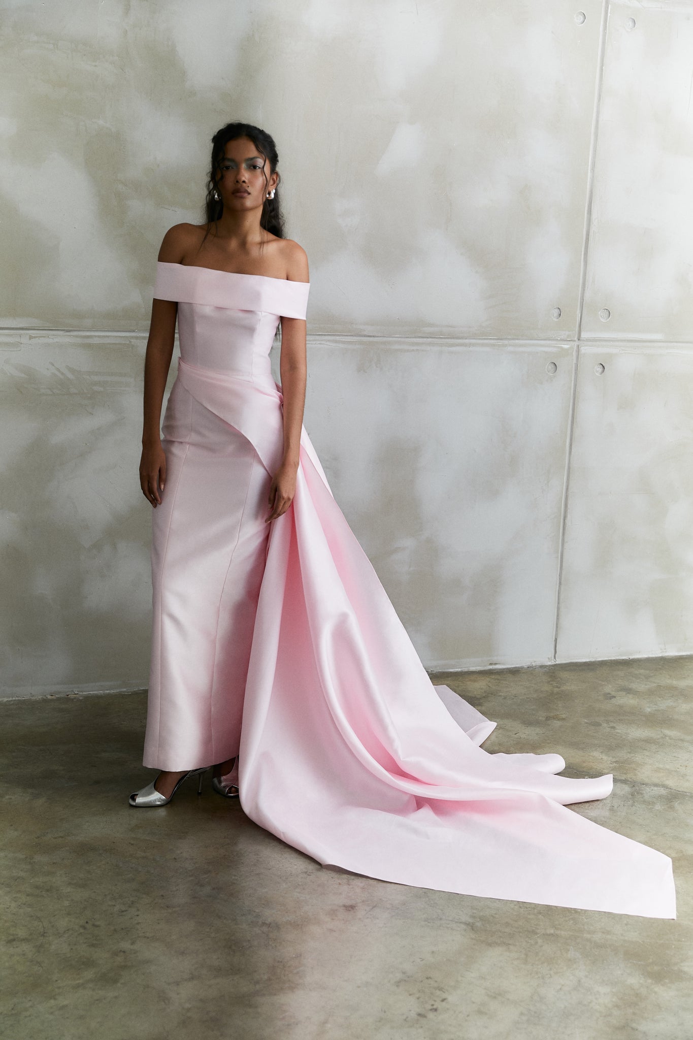 Off-Shoulder Skinny Mikado Gown With Side Train