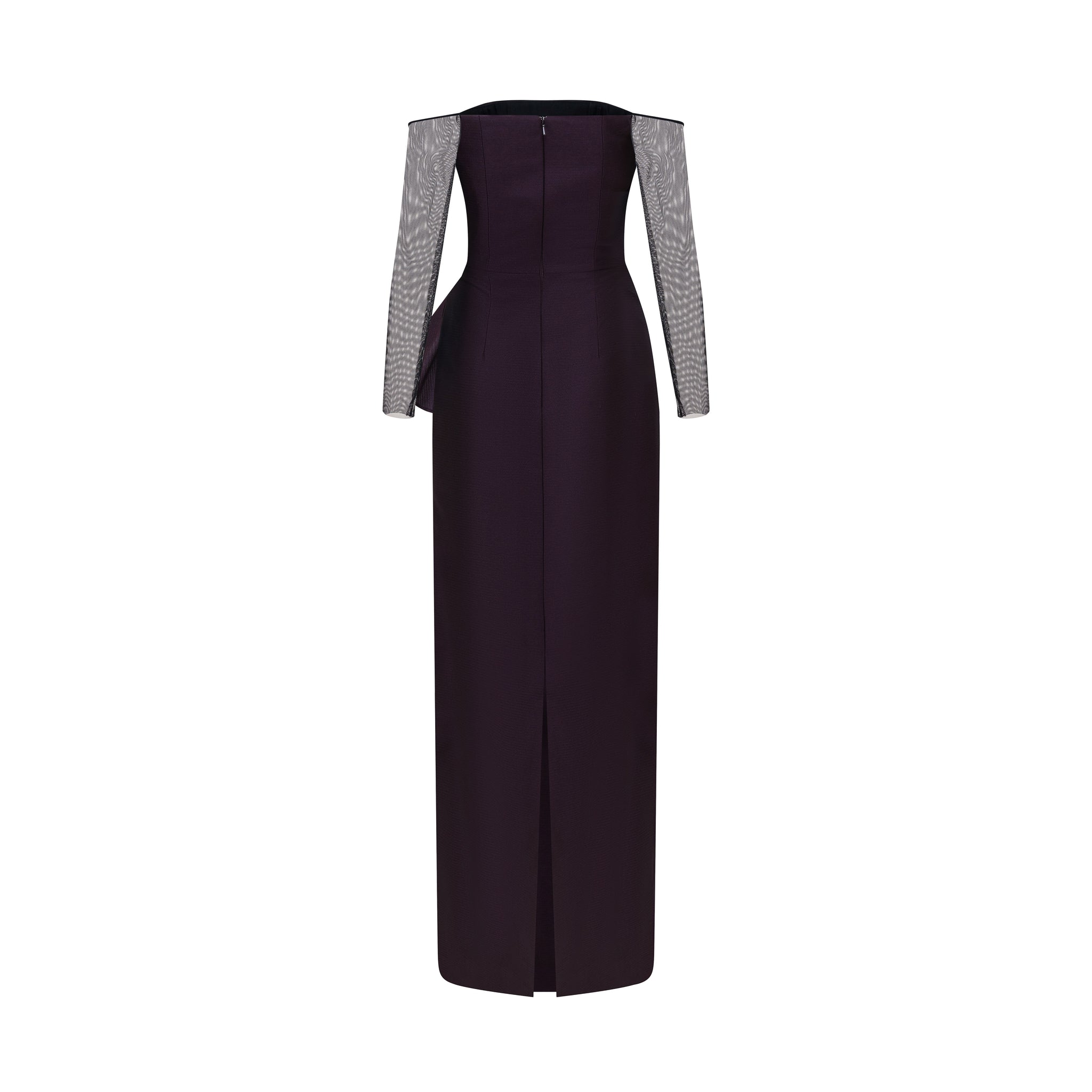 Offshoulder Gown with Wrap Skirt And Illusion Sleeve